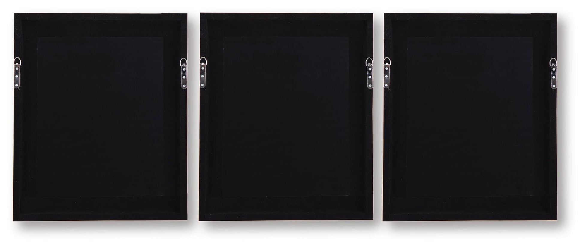 | Details | Set of 3 prints, Light brown frame, Acrylic front with mat, D-ring bracket for hanging, Vertical hanging only | |