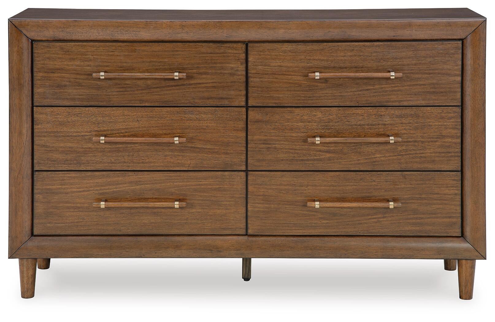 This dresser is perfect for contemporary or mid-century interiors. Its wood-tone finish is versatile and timeless. The drawers, designed with exquisite framing and elongated wooden pulls, enhance the overall aesthetic. Whether you want to refresh your entire bedroom or add a few key pieces, this is the ideal choice.