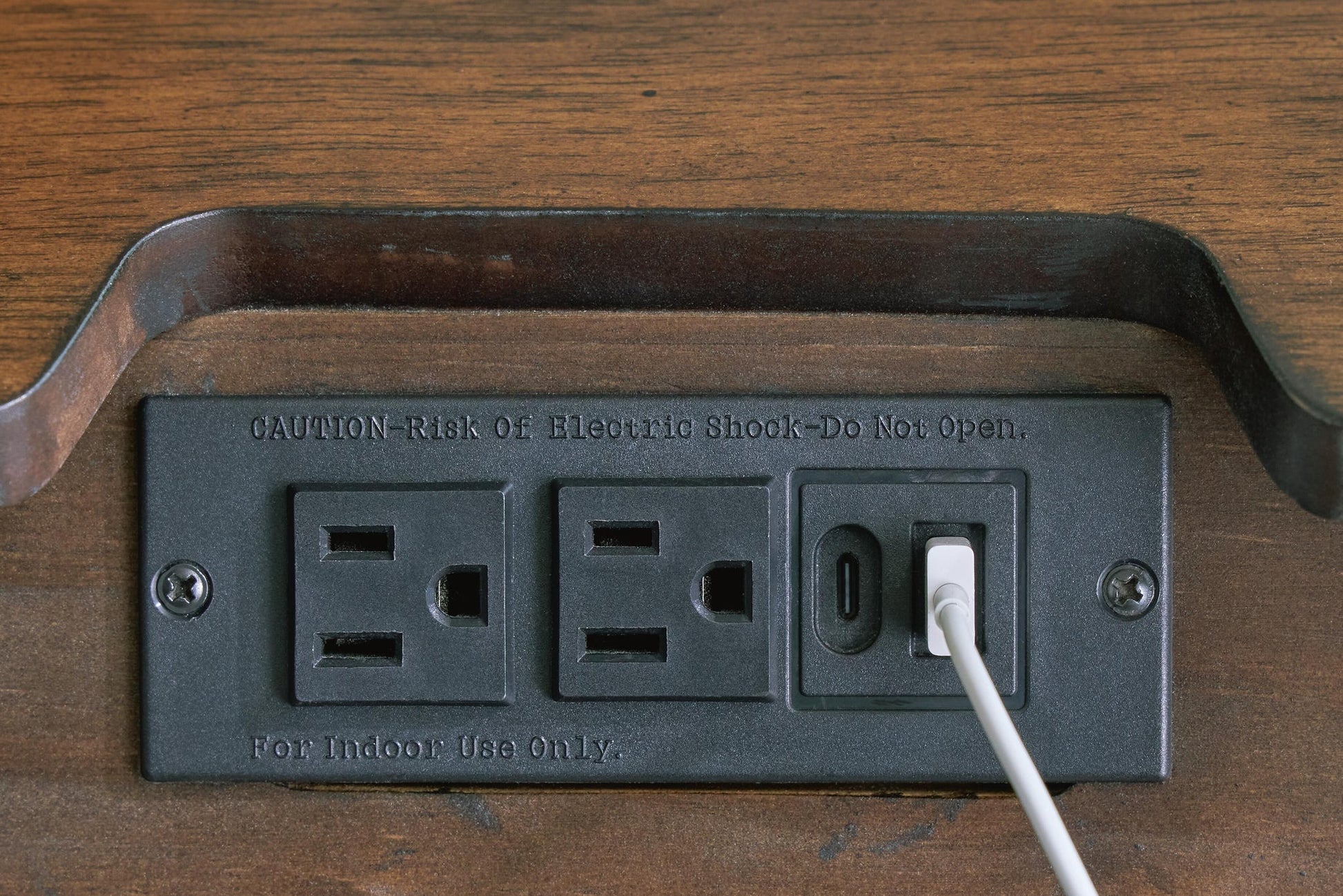 | Details | Made with hardwood solids, mango wood veneer and MDF substrates, Medium brown wood-tone finish, 2 drawers with fully finished interior, dovetail construction and heavy duty ball-bearing side glides, Round tapered legs, 110V power supply with USB-A and USB-C charging ports, Power cord included; UL Listed | |