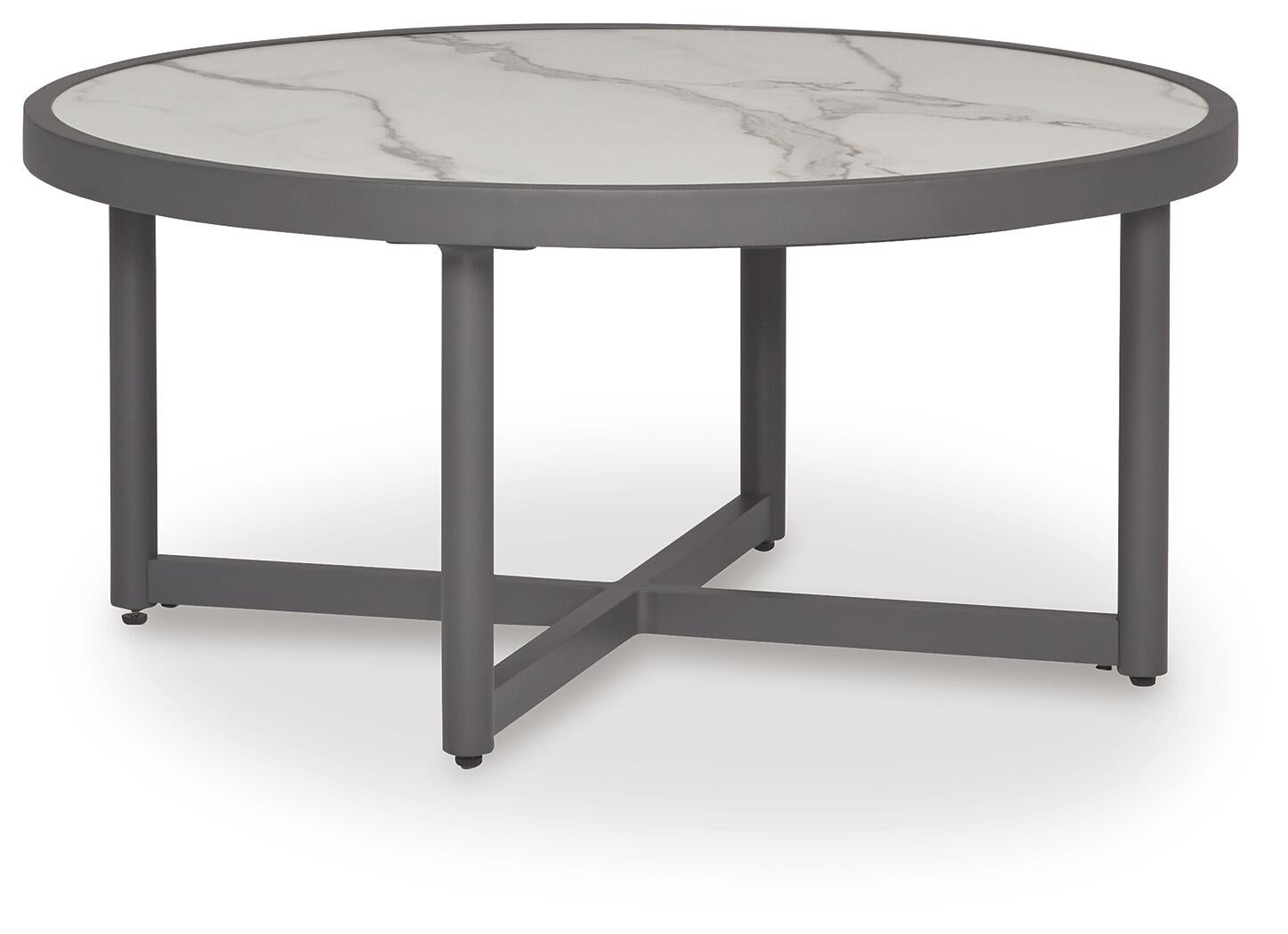 A refined marriage of style and durability, this outdoor coffee table adds contemporary flair to your porch or patio. Shades of gray and a luxe marble look on top lend a versatile, neutral appeal. And this table is built to last, thanks to its rust-resistant aluminum construction.