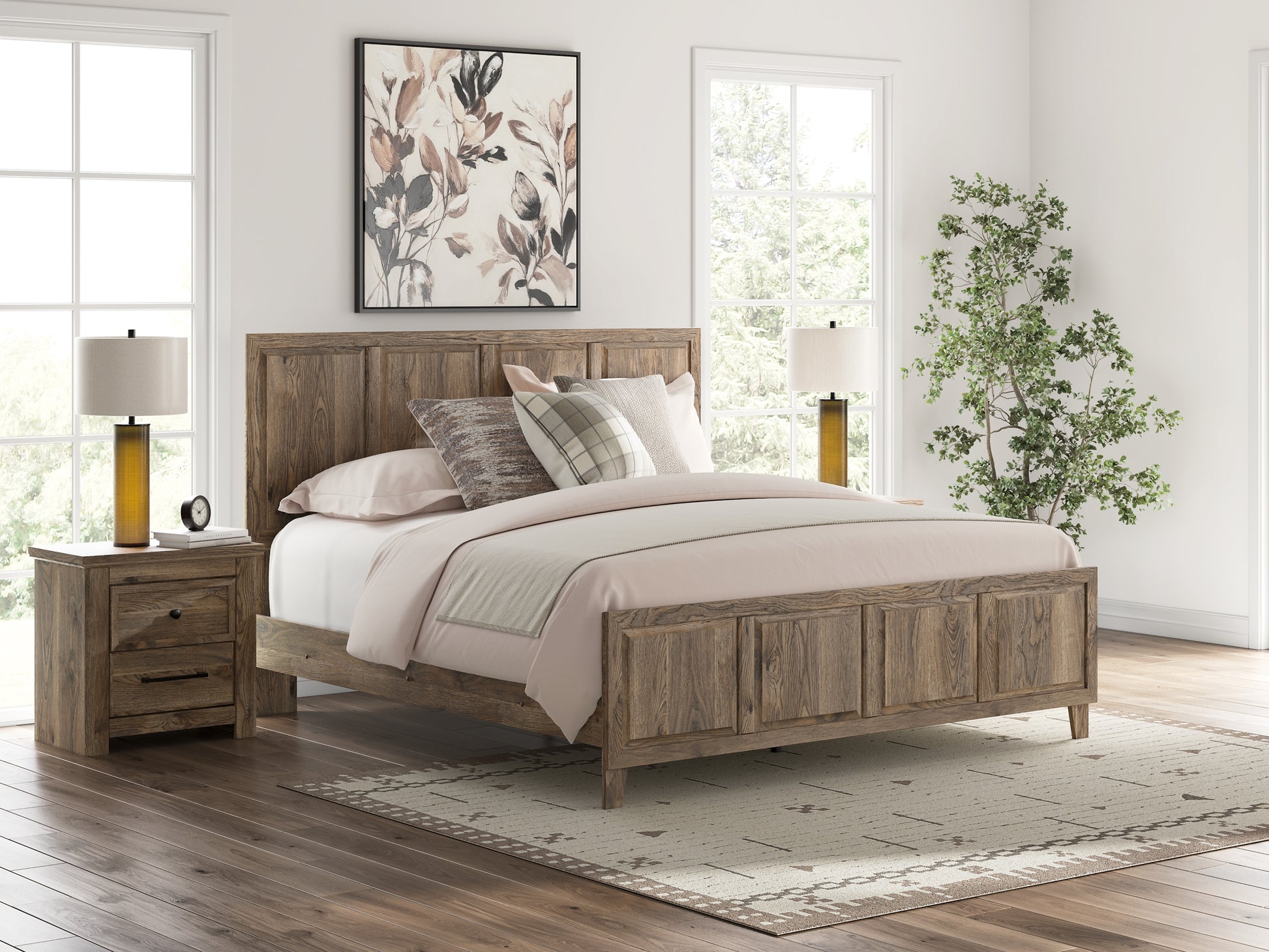 Rusticott King Panel Bed with Mirrored Dresser and Nightstand