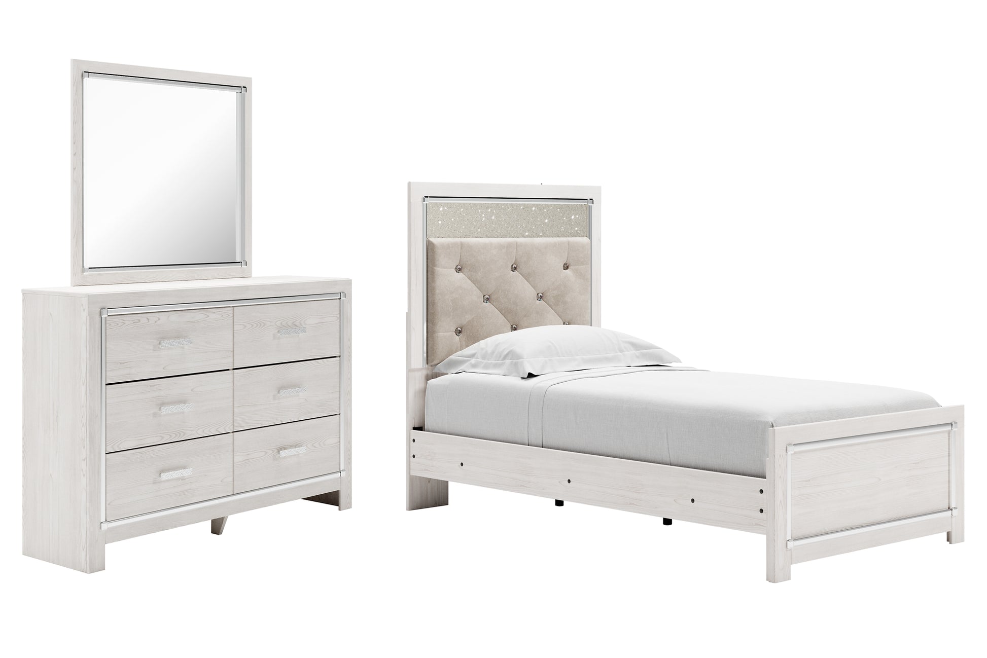 Altyra Twin Panel Bed with Mirrored Dresser